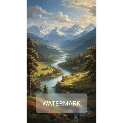 A serene valley unfolds beneath majestic snow-capped peaks, with a meandering river reflecting the azure sky, framed by lush meadows and vibrant wildflowers.