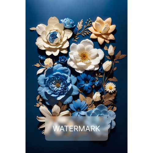 Delicate paper flowers in shades of blue and cream against a dark background, creating a peaceful and simple harmony that captures the quiet beauty of a twilight garden.