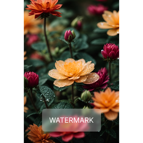 A close-up of orange and pink flowers with fresh dew drops on their petals. The water sparkles in the light, making the garden feel fresh and alive.