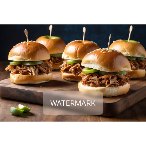 Tender pulled pork sliders, layered with crisp green apple slices, nestle on a wooden board. Soft brioche buns, sprinkled with sesame seeds, crown the succulent meat, offering a perfect blend of sweet and savory.