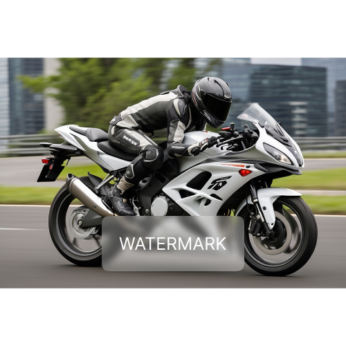 A motorcyclist clad in sleek black gear leans into a sharp turn on a white sports bike, blurring the cityscape behind with the rush of speed.